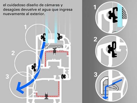 Una buena carpintería permite que en condiciones de clima extremo un mínimo de agua ingrese en el perfil y mediante el cuidadoso diseño de cámaras y desagües se lleva esta agua nuevamente al exterior. Una carpintería de baja prestación no cuenta con estas posibilidades.